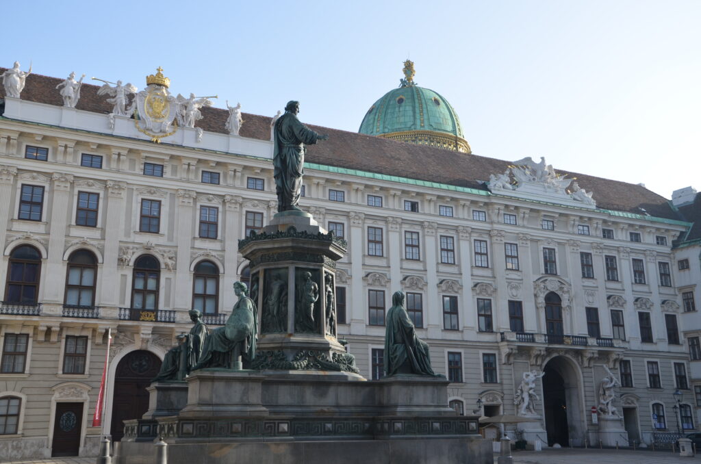 Kaum ein Kaiser hat wohl einen prominenteren Platz als Franz der I. Direkt vor sich, hinter dem Schweizertor, erinnern ihn die Reichsinsignien der Habsburger, die Ornate des Ordens vom Goldenen Vlies und die Broschen und Hofbecher des Burgundischen Erbschatzes an seine stolzen kaiserlichen Vorfahren. Nicht minder bedeutenden, gemahnen ihn zu seiner Linken die Ausgrabungen am Michaelerplatz an die römischen Legionäre, die hier in den ersten Jahrhunderten nach Christi Geburt, mutig ihre Lager und das Imperium Romanum verteidigten, bevor sie von den Markomannen und Quaden überrannt wurden. Während sich seine rechte Hand noch sanftmütig Richtung Heldenplatz hebt, wo er der Heldentaten des Prinzen von Savoyen-Carignan – besser bekannt als Prinz Eugen – gedenkt, dreht er unserem heutigen Präsidenten am Ballhausplatz den Rücken zu.